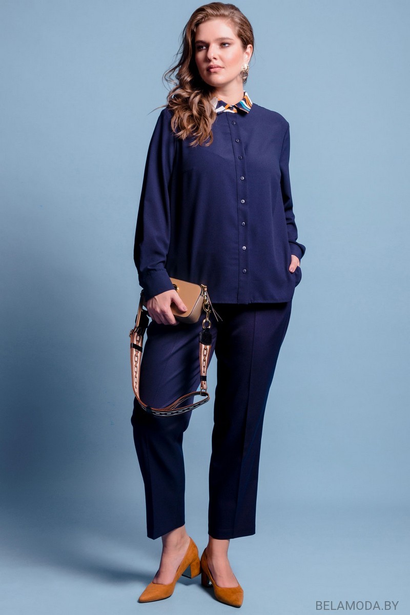 Блузка прямого силуэта, выполнена из блузочной ткани. Спереди планка с застёжкой на петли и пуговицы. По кокетке спинки заложена рубашечная складка. Воротник отложной на стойке. Рукав втачной, по низу манжет 6 см. По низу боковых швов разрезы 12 см, по полочкам края закруглённые. Длина изделия 72 см Длина рукава 61 см Измерения по готовому изделию: 54р ОГ 122 см, ОТ 122 см 56р ОГ 126 см, ОТ 126 см 58р ОГ 132 см, ОТ 132 см