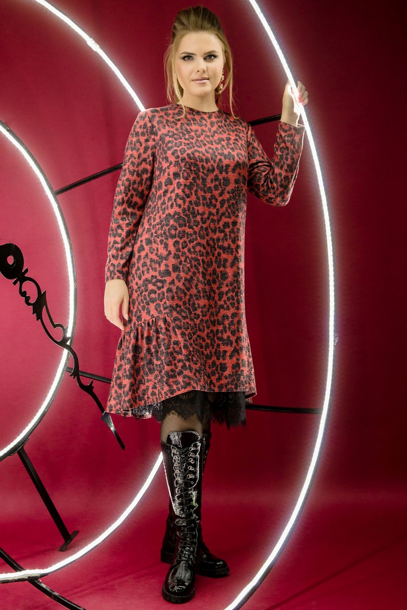 Комплект платье и нижнее платье. Платье свободного силуэта, спереди укороченное. по боковой части и по спинке присборенный волан по низу. Выполнено из трикотажного полотна с люрексом (без подкладки). Рукав втачной, длинный. Вырез горловины круглый, по спинке разрез 10 см с застёжкой на петлю и пуговицу. Нижнее платье прямого силуэта на бретелях (длина бретелей регулируется). Выполнено из тонкой плательной ткани, по низу кружево 21 см.