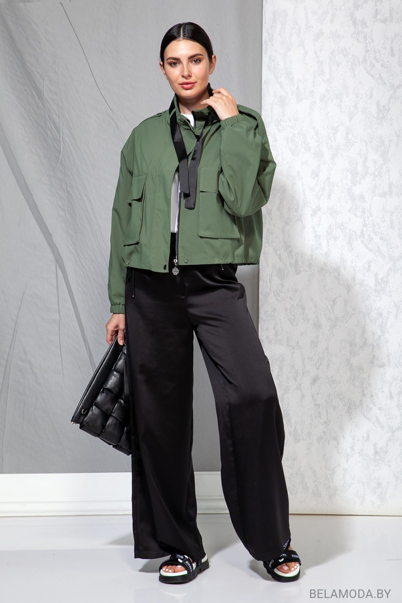 Куртка – ветровка, из гладкокрашеной плащевой, полиэфирной ткани, без синтепона, на притачной подкладке. Куртка прямого, свободного силуэта, базового классического кроя, длиной примерно до линии бедер (в зависимость от роста потребителя). На передней части предусмотрены объемные, функциональные, накладные карманы с клапанами, фиксирующимися на кнопки. Застежка встык на разъемную тесьму «молния» и ветрозащитной планкой снаружи, которая имеет дополнительную фиксацию на кнопки. Застежка – «молния» имеет длину от линии низа до верхнего края воротника. Спинка разрезная по линии талии. Линия плеча - спущенная. Вдоль линии плеча предусмотрен декоративный элемент п виде паты, которые так же фиксируются на кнопки. Рукав одношовный, втачной, длинный. Низ рукава на резинке шириной 2,5см. Воротник – стойка. Вдоль воротника располагаются пришивные паты, через которые протянута репсовая лента контрастного цвета. Низ куртки имеет дополнительную стяжку на шнурок. Подкладка синтетическая, однотонная. Длина куртки (по среднему шву спинки) = 60см.(+1см.) Длина (рукав + плечо) = 72см.(+1см.)
