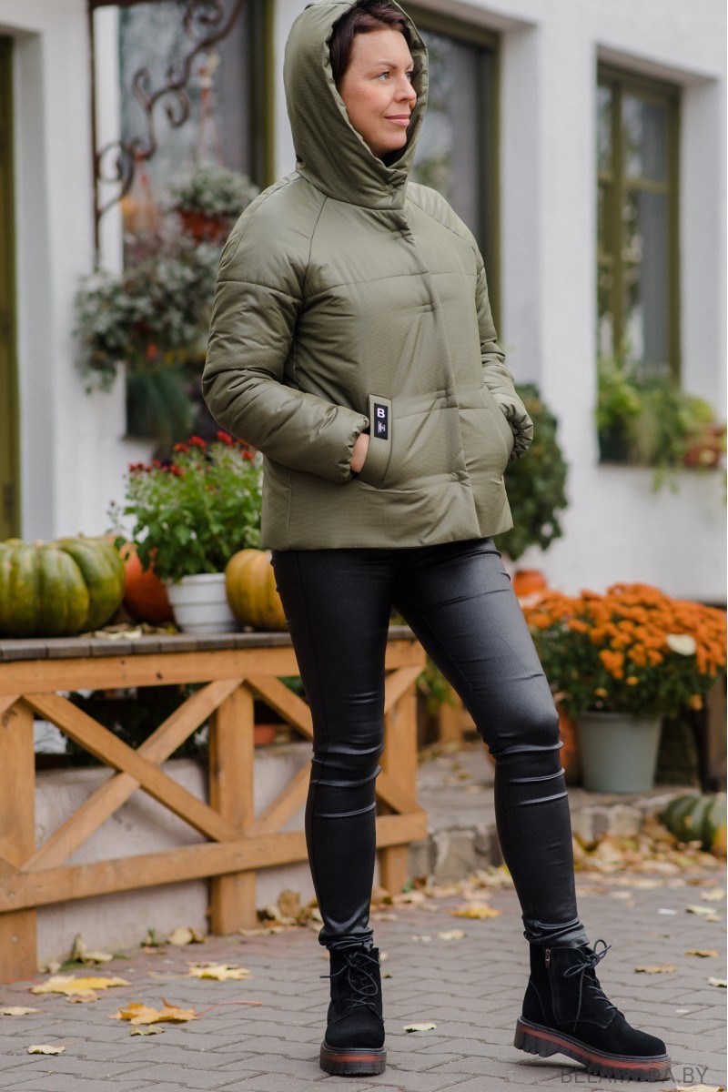 Комфортная женская куртка прямого силуэта с рукавом реглан, по низу рукав чуть прсборен. Спереди наклонные карманы "листочки". Один рукав задекорирован отделочной нашивкой. Застежка однобортная на потайные. Горловина оформлена капюшоном, спереди переходящим в стойку. Спинка без особенностей. Куртка на подкладке и на утеплителе HOOPON, выд. температурный режим -15 C. Длина куртки-46-50 размер-68 см, 52-56 размер-73 см. Длина рукава- от плеча -80 см.