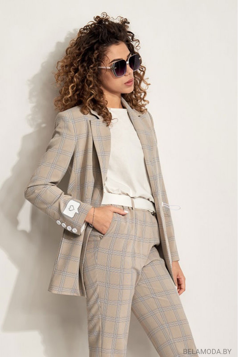 Жакет с центральной застежкой на одну пуговицу. по талии кулиса с шляпной резинкой и фиксаторами. На рукаве дизайнерская печать. Жакет на подкладке, воротник с отрезной стойкой. В рельефах на полочке карманы.
